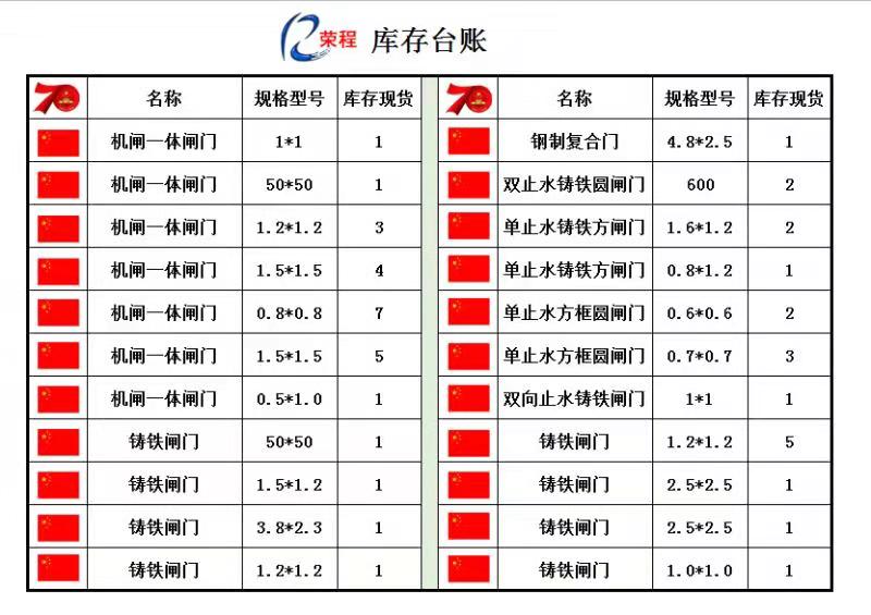鑄鐵閘門規格齊全產品從0.2x0.2—6.5x6.5m6.5x6.5m米并根據客戶需要鑄造矩形閘門批量生產銷售。鑄鐵閘門成形后的形狀多數為方形、圓形,也有扇形,弧形等。但是在鑄造上卻有不同的要求,根據客戶需要鑄造合適的閘門,歡迎采購,榮程水利國慶期間選購以上尺寸,均享受廠家優惠政策。