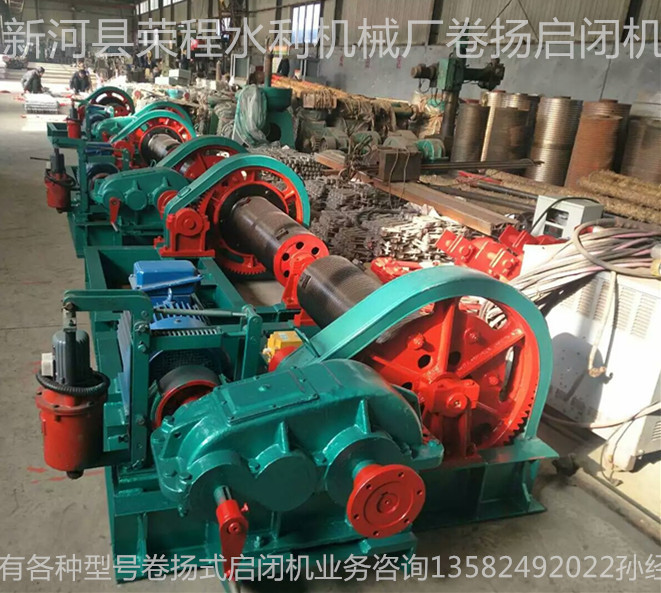 卷揚啟閉機是水利水電工程啟閉門的專業水力機械產品。是農業排灌站水庫、水電站、水壩、防潮閘門、截污等不可缺少的設備之一。本實用新型具有結構緊湊、運行可靠、提升高度范圍寬、安裝維護方便、提升和關閉速度快的優點。當啟閉力小于250kN時,采用手動和電動驅動方式。無論是否通電,都可以打開和關閉閘門。
